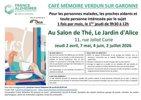 L’association France Alzheimer 82 renforce sa présence sur la commune en proposant désormais un rendez-vous mensuel au « Jardin d’Alice », salon de thé situé au 11 rue Joliot Curie, tenu par Marielle.